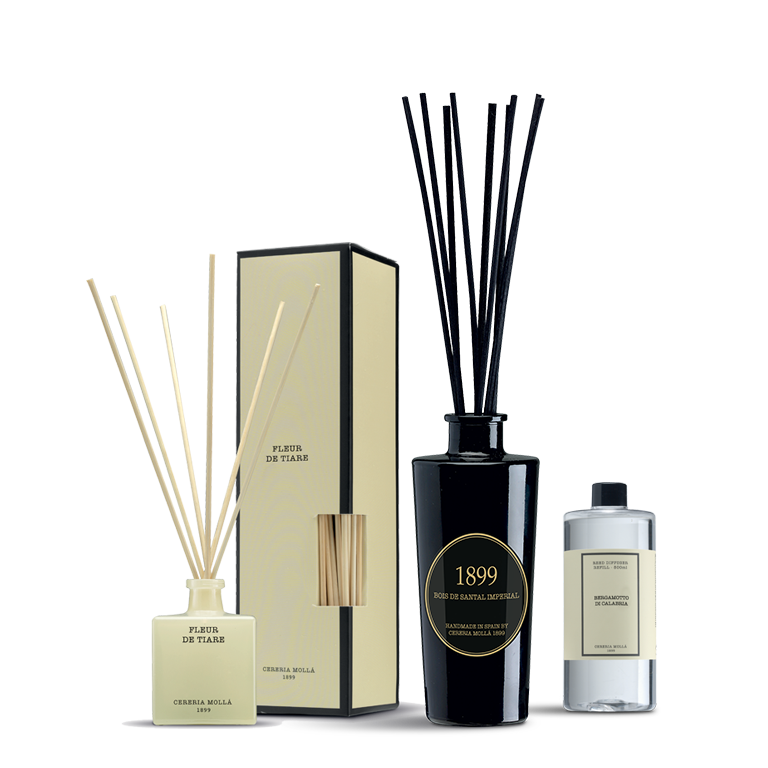Range of mikado air fresheners for the home with rattan rods and spare parts.